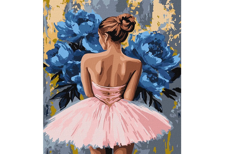 Набір для розпису по номерах Балерина з блакитними півоніями з фарбами металік" 40x50смKHO8661"