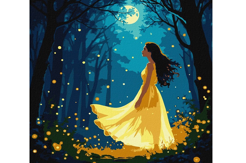 Набір для розпису по номерах Дівчина серед світлячків з фарбами металiк extra" 30х30см KHO8576"