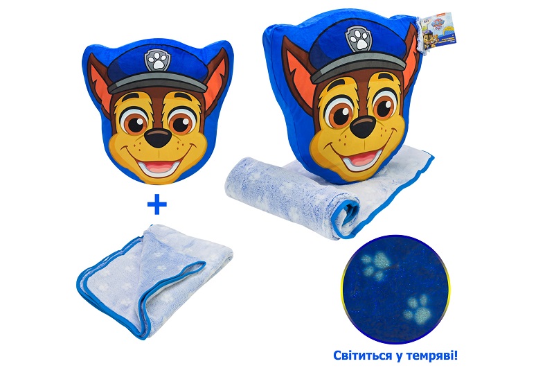М'яка іграшка з пледом Paw Patrol арт. KH70/001L (8шт) подушка 38*41*7см плед 118*80см світиться в т