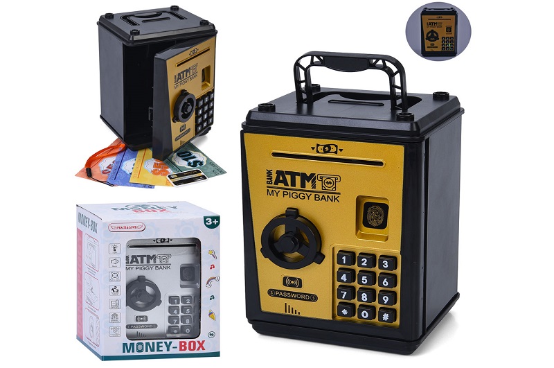 Скарбничка MK 5773 (12шт) сейф, код, 12,5-18-11,58см, відбиток, музика, звук, світло,затягуює купюри