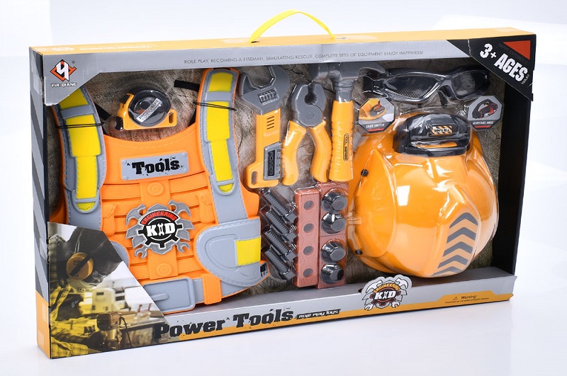 Набір інструментів T015A (12шт) жилет, маска, окуляри, молоток,плоскогубці, болти, світло, на бат-ці