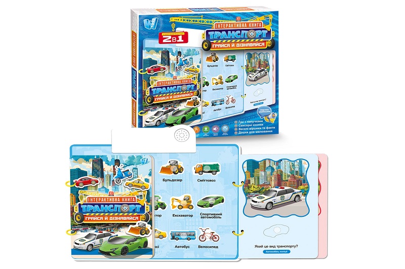 Інтерактивна книга Транспорт" 36125 (48) "WToys", УКР МОВОЮ,звукові ефекти, цікаві факти, сенсорні"