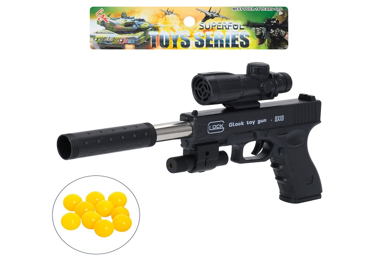 Пістолет 03-1+ (48шт) 32см, пластикові кулі, лазер, на бат(табл), у пакеті, 15-23-3см