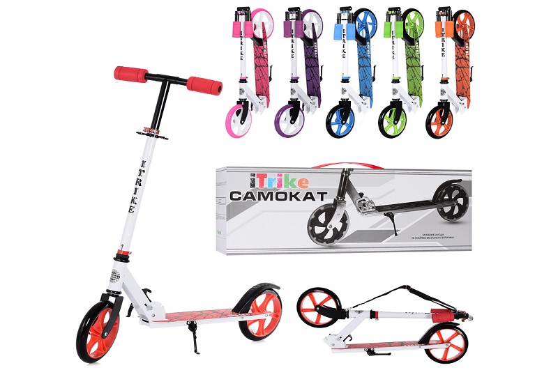 Самокат SR 2-010-4-2 (6шт) сталь,2колПУ200мм,кермо90-100см,підніжка30-10см,підставка,замок,6кольорів