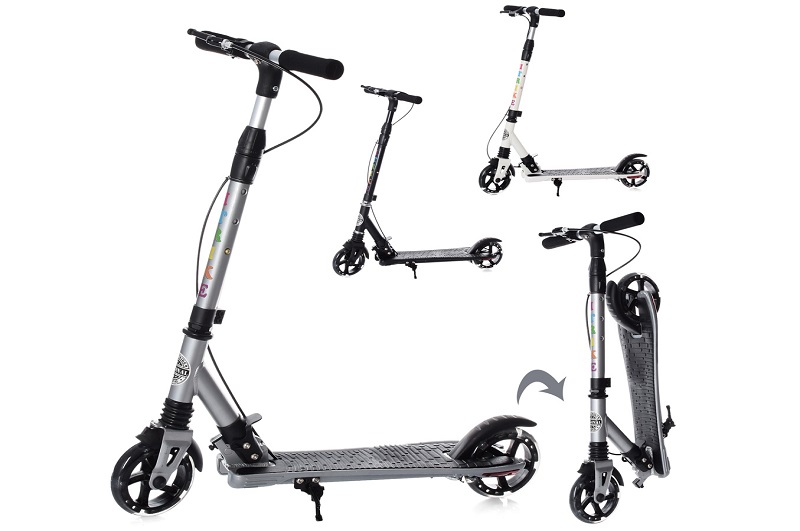 Самокат SR 2-039-7 (4шт) алюм,2колПУ145мм-світло,ручне гальмо,кермо81-91см,підніжка42-10см,3кольори.