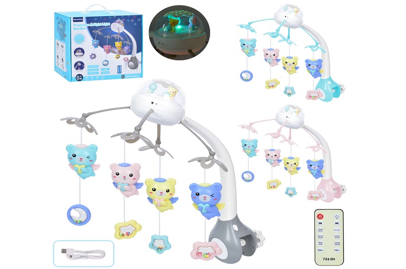 Карусель на кроватку 6688ABC (6шт) підвіски 4шт,Д/К(І/Ч),музика,3види,USB,на акум.,в кор-ці 28-31-13