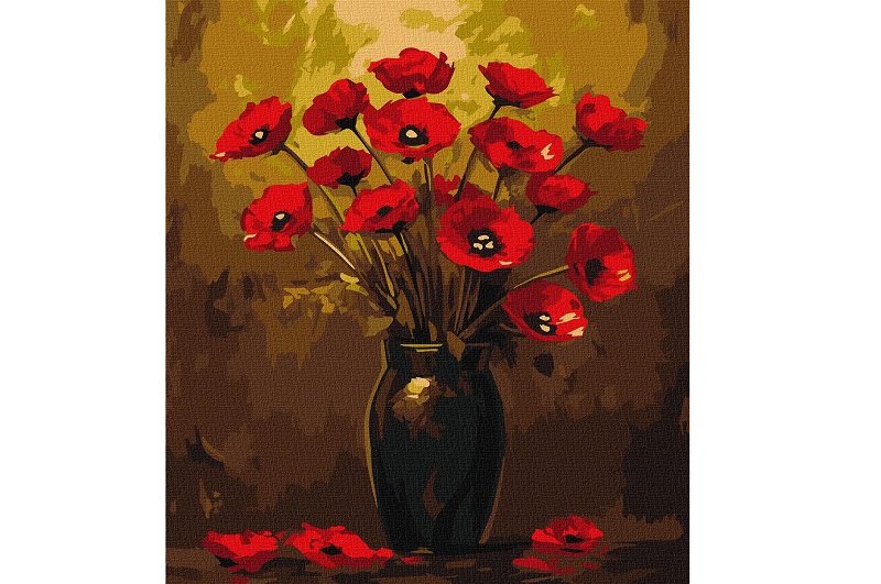 Картина по номерах Букет маків з фарбами металік" 40х50см KHO3328"