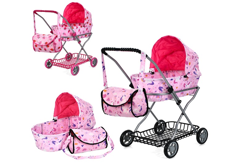 1,245.32 грнКоляска 9325 (6шт) для ляльки, метал,67-63-35,кошик,сумка,вис до ручки-66см,3вида,в кульку,62-35-12с