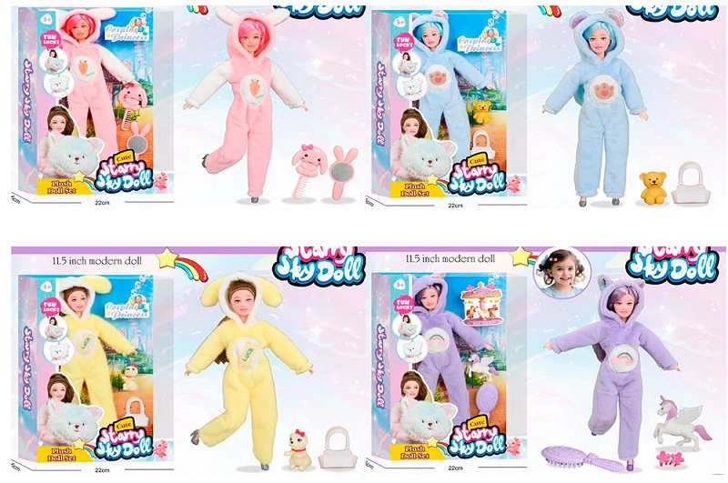 Лялька SK162-62A-B-C (48шт) 30см, шарнірна, кігурумі, аксесуари, 4 види (3 види з фігуркою тварини),