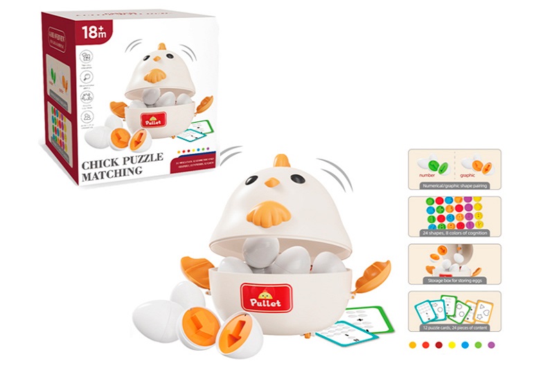 Гра FXB-36 (18шт) курча, 20-19-17см, яйця-пазли (цифри, ігури), картки, в кор-ці, 18,5-20,5-18,5см